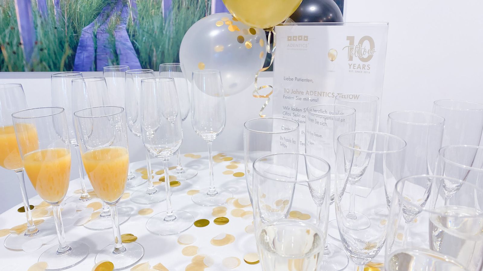 Gefeiert wurde am 13. April direkt vor Ort – gemeinsam mit unseren Teams und unseren Patienten. Ganz entspannt, genau so, wie es zu ADENTICS passt: mit Sekt, Orangensaft, liebevoller Dekoration und vielen guten Gesprächen.