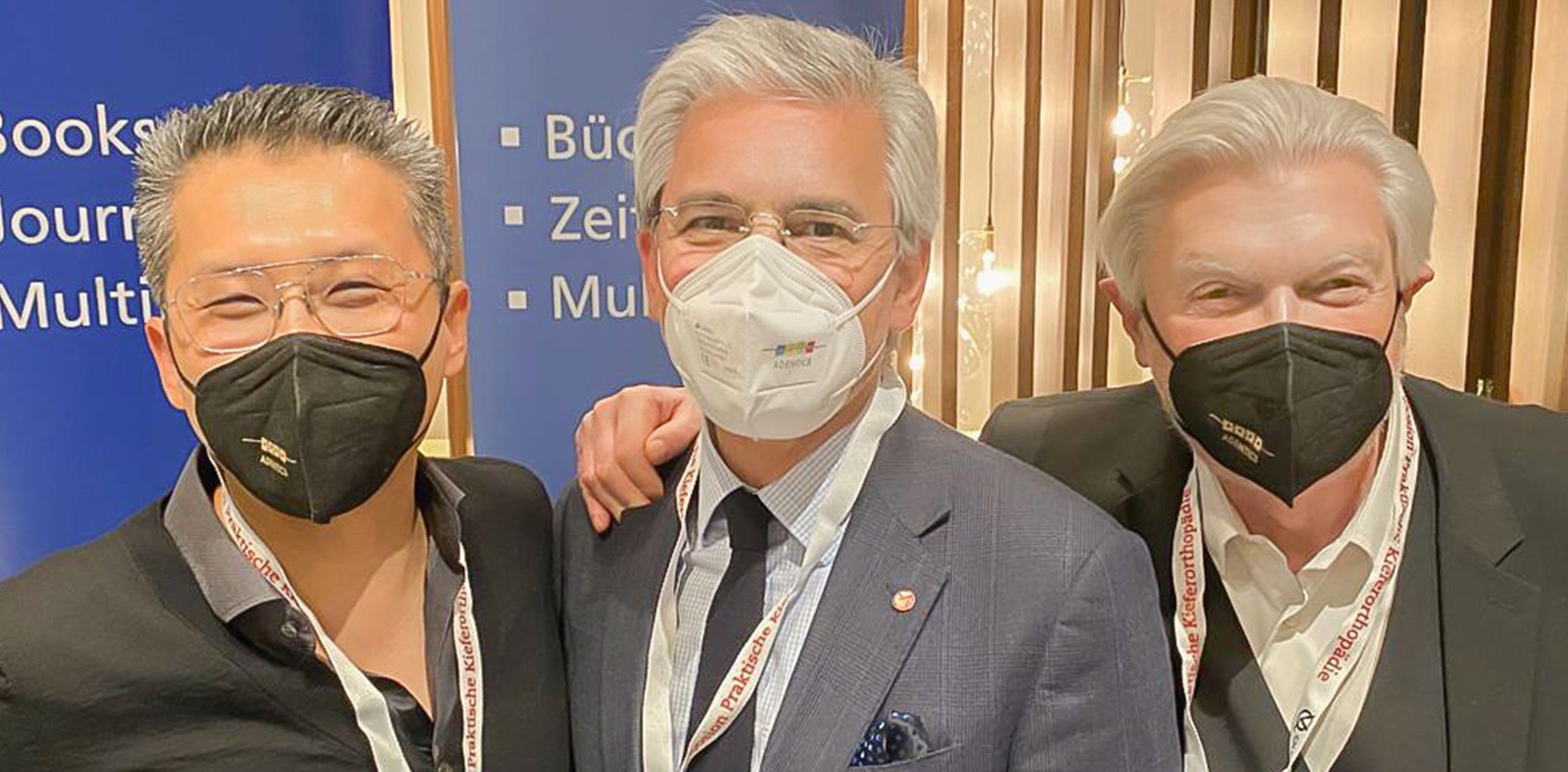 ADENTICS Couture: ADENTICS doctors Prof. Radlanski, Prof. Miethke and Woo-Ttum Bittner proudly wore the different versions of the ADENTICS FFP2 mask at the event. Classic orthodontics is definitely not a discontinued model: Woo-Ttum Bittner talked with the "old master" of orthodontics Dr. John Bennett from Great Britain about the advantages and disadvantages of modern treatment approaches and agreed: It's all in the mix.