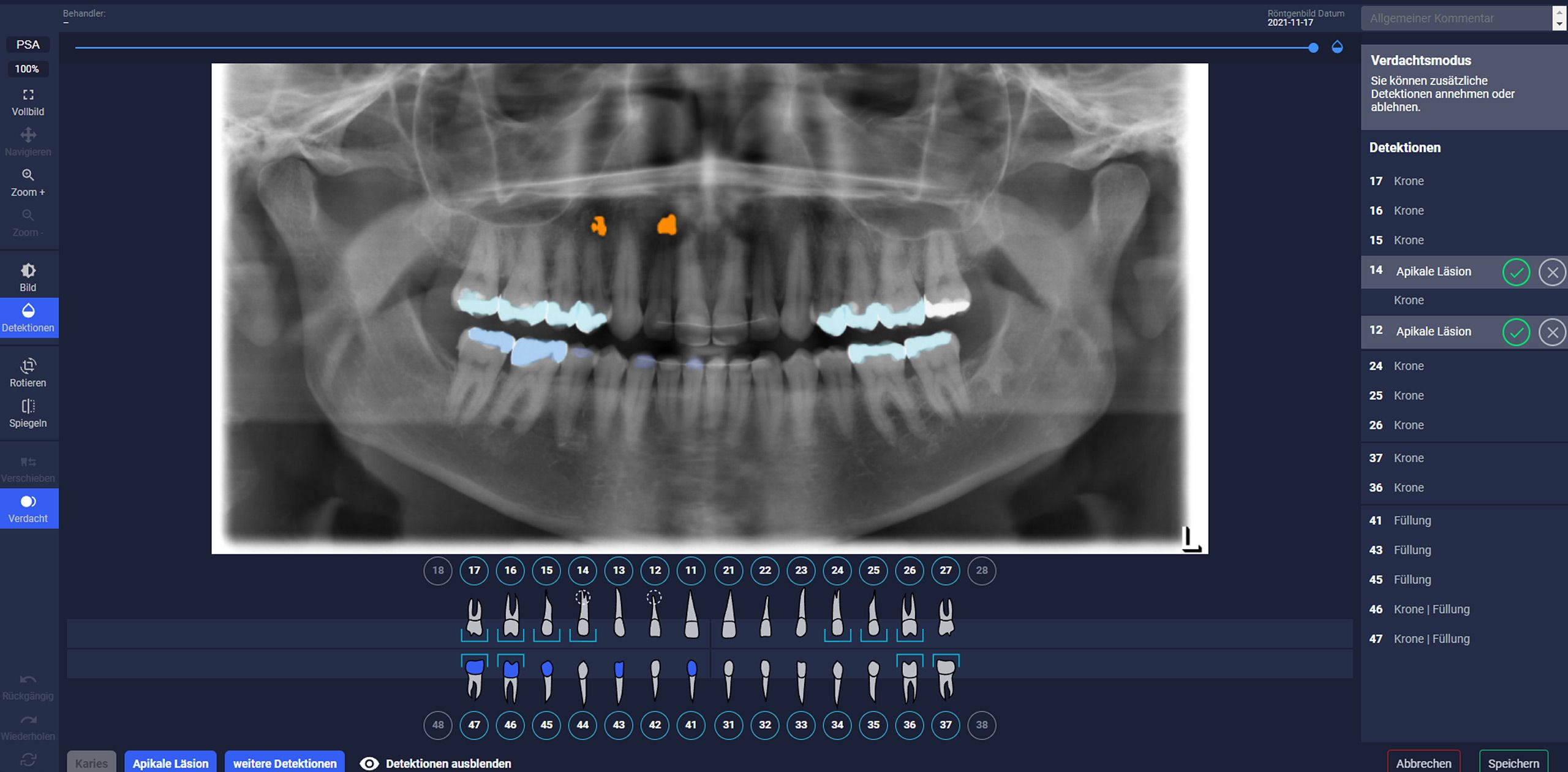 X-ray images* are now additionally examined at ADENTICS using the dentalXrai program developed at Charité. It is particularly helpful in detecting caries or inflammation in the bone that might be overlooked despite careful diagnosis due to deviating bone or tooth structure.
