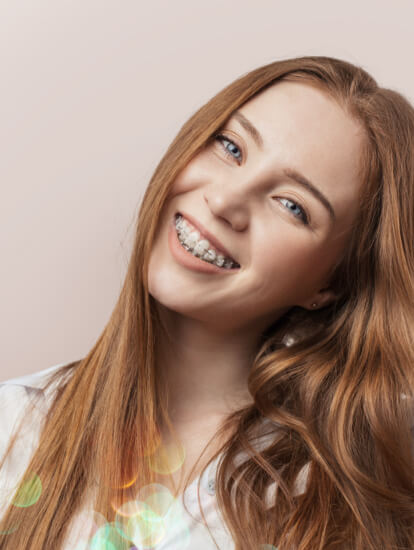 ADENTICS uses crystal clear brackets that can adapt every individual tooth colour. Ceramic brackets are less visible.