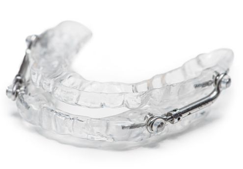 As an alternative for patients with primary snoring, a light to moderate form of obstructive sleep apnea, or with a CPAP incompatibility, can be fitted with a custom adjustable oral appliance that is worn while sleeping. The appliance holds the lower jaw forward, preventing the tongue and the soft tissue of the throat from collapsing into the airway.