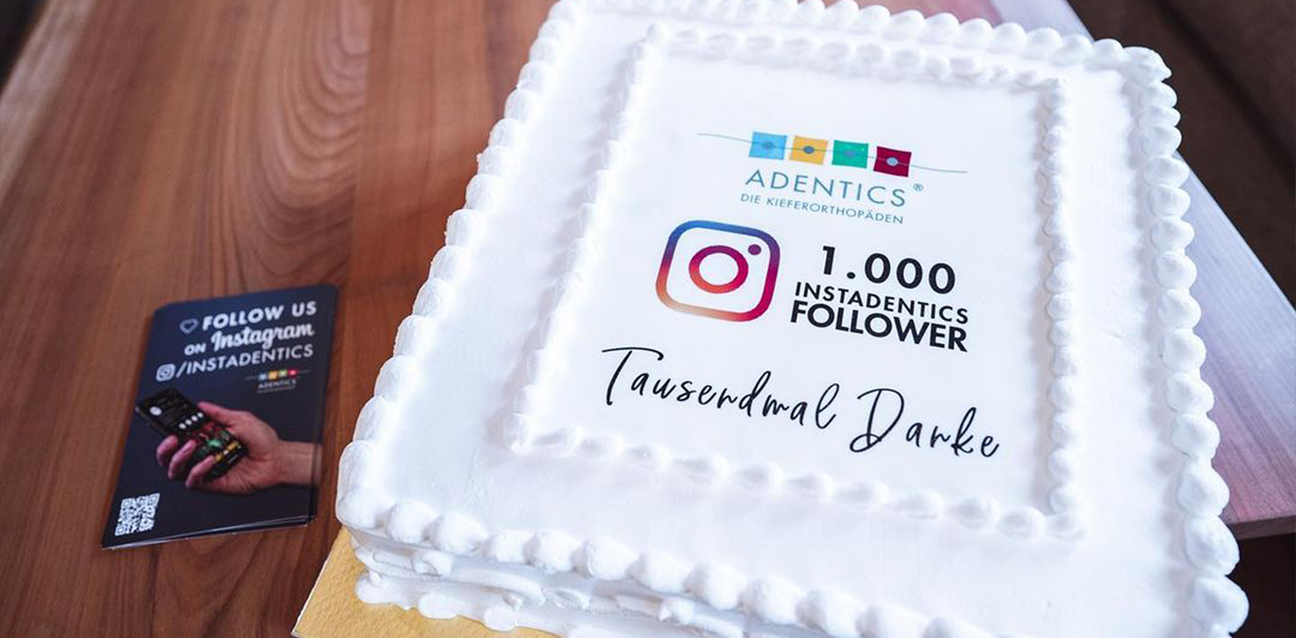 Und wir freuen uns über jeden Einzelnen von Euch. Seien es Patienten, Mitarbeiter, Kollegen, überweisende Zahnärzte, oder Family & Friends. Es ist schön, dass ihr uns folgt und auch auf diesem Kanal News und Impressionen aus unseren Praxen abonniert. Diesen kleinen social-media Meilenstein hat ADENTICS mit seinem Team an allen 5 Standorten gefeiert und eine 1K Insta-Torte bestellt. Seht hier einige visuelle Eindrücke davon.