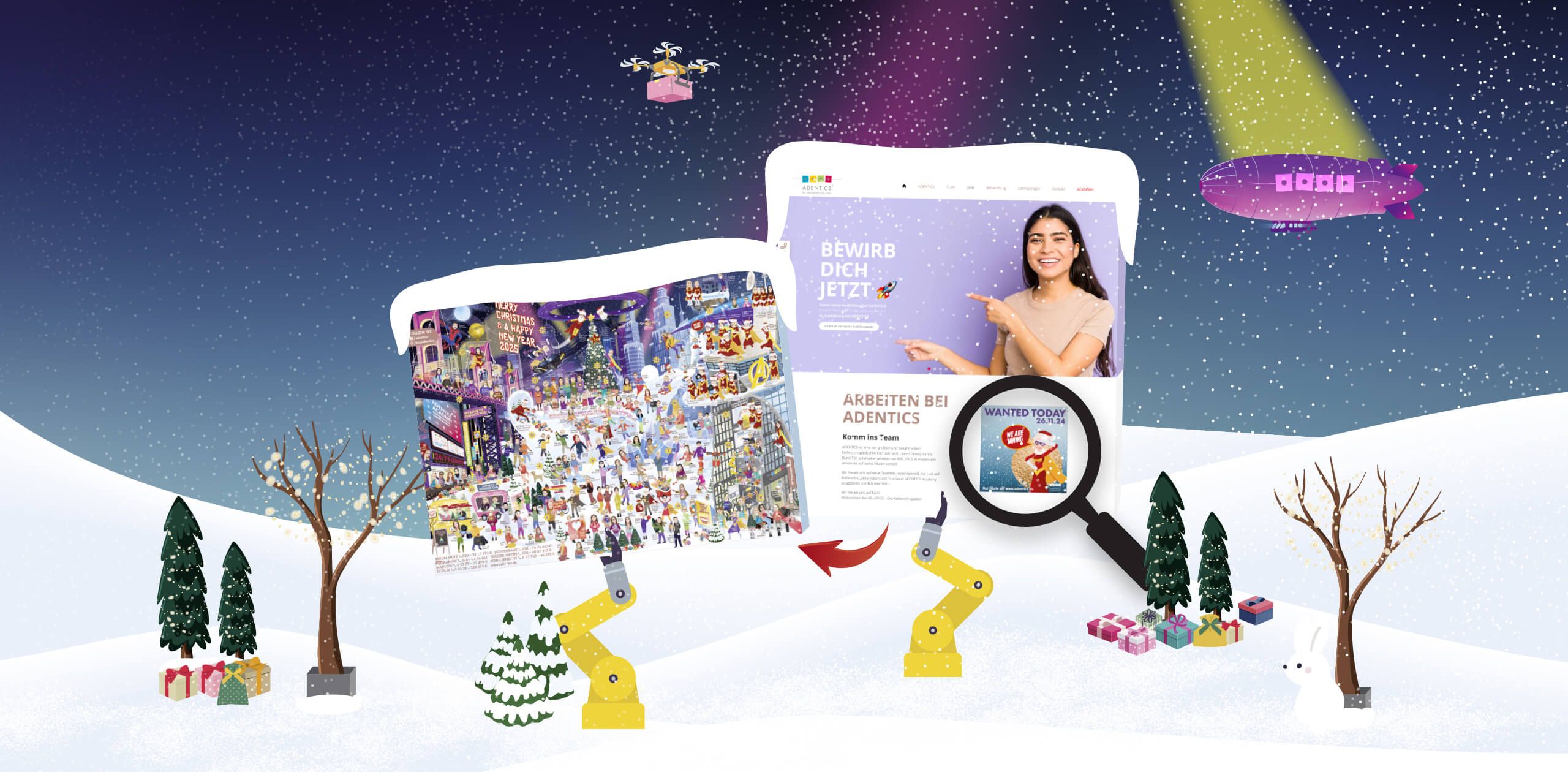 Begib dich heute und die nächsten drei Tage auf die Suche nach weihnachtlichen Motiven auf der ADENTICS Website.
