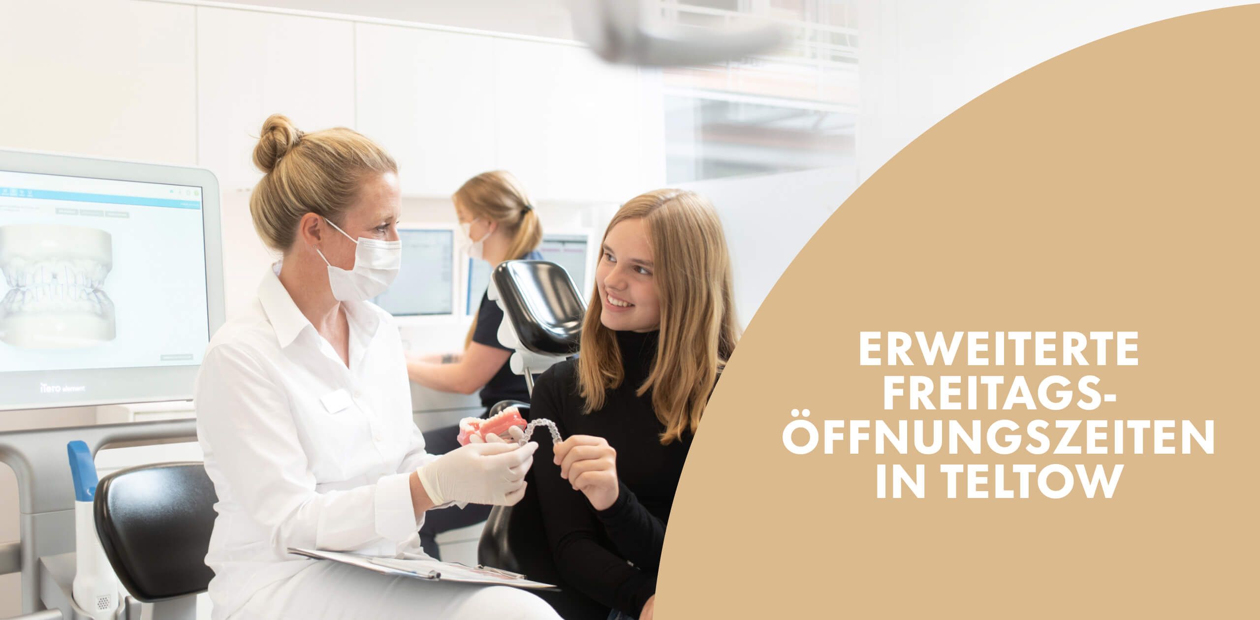 ADENTICS Teltow erweitert den Service: Ab sofort bieten wir regelmäßig Freitagssprechstunden an – für noch mehr Flexibilität bei Ihren kieferorthopädischen Terminen in Teltow und Umgebung.